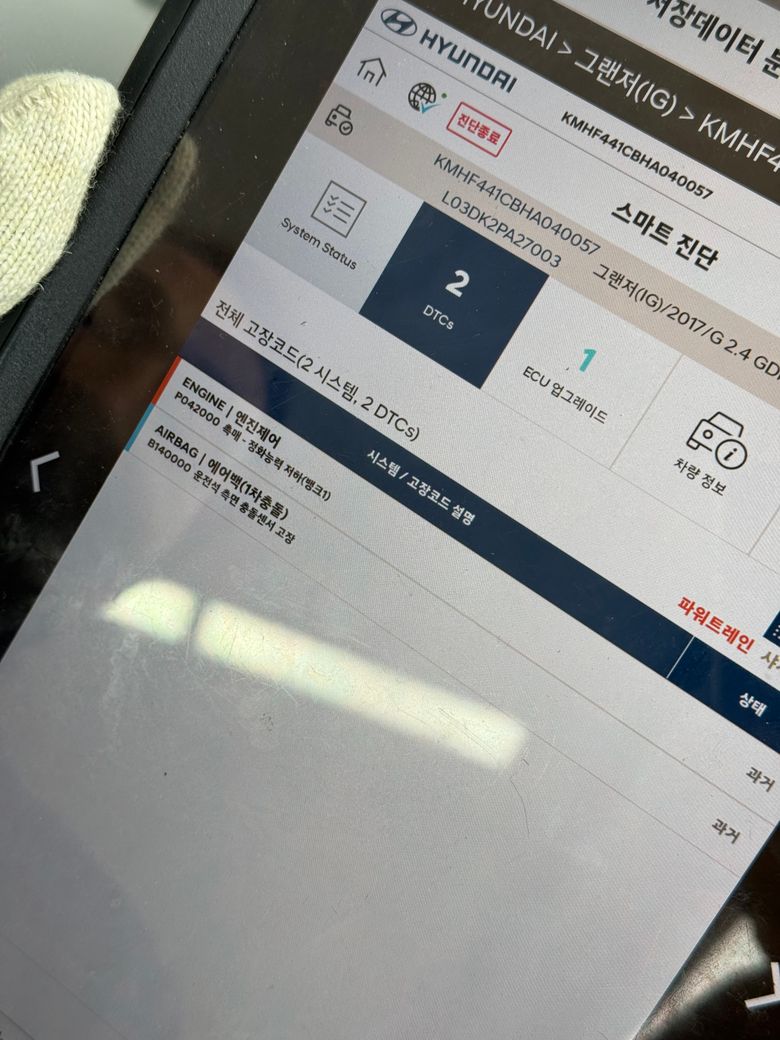 작년 엔진오일 누수잇어서 엔진보링하고 이번엔 엔진경고등 떠서 촉매문제라 한번 지웟다가 다시 탓는데 또 엔진경고등떠서 스캔찍으니 촉매정화능력저하 또 뜨네요