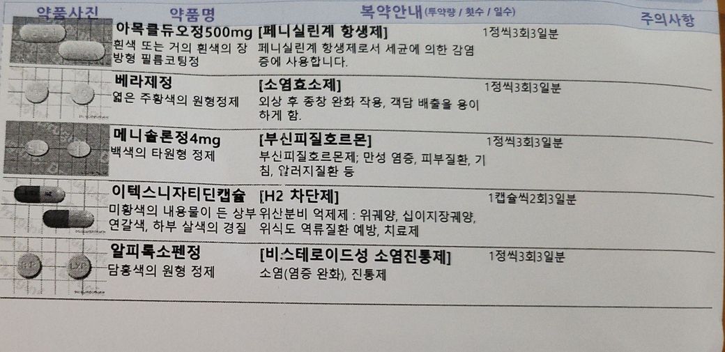 아목클듀오정 / 베라제정 / 메니솔론정 / 이텍스니자티딘캡슐 / 알피록소펜정 를 같이 복용하셔도 됩니다만