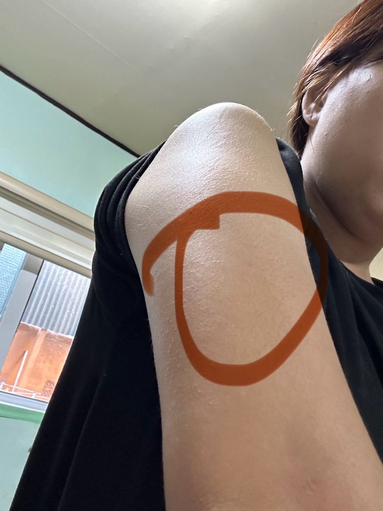 삼각근 위치인거 이는데 상완삼두근 위치랑 가까운것 같아요 들어갈때 두둑 느낌나던데