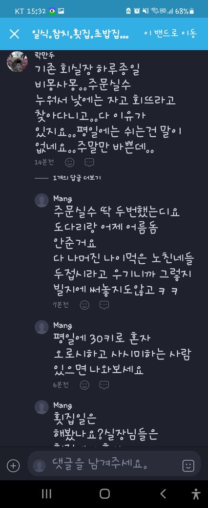 사진 속 댓글중 전회실장에 대한내용입니다 그게 저를 나타내는것이고