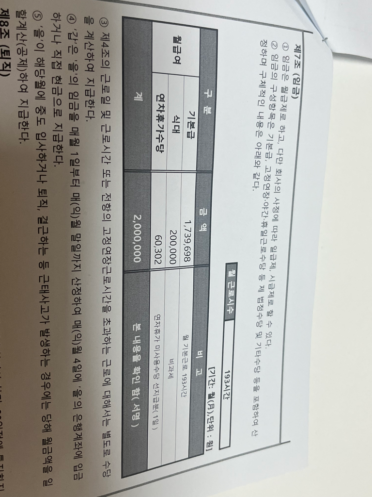 복리후생적 금품 중 최저임금의 1%를 초과하는 금액에 대해서는 최저임금액에 포함이 되기 때문에 올려주신 근로계약서를