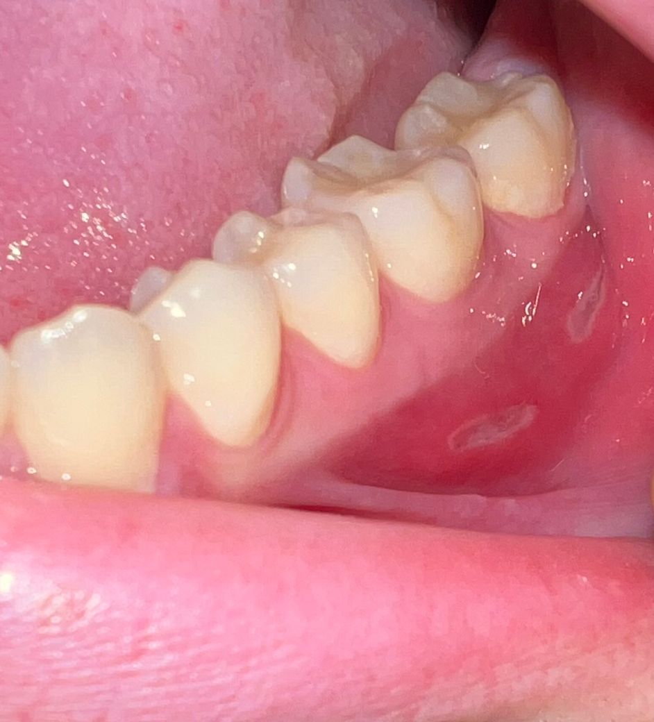 잇몸에 외상 없이 상처가 생겼고, 부종과 통증이 있습니다