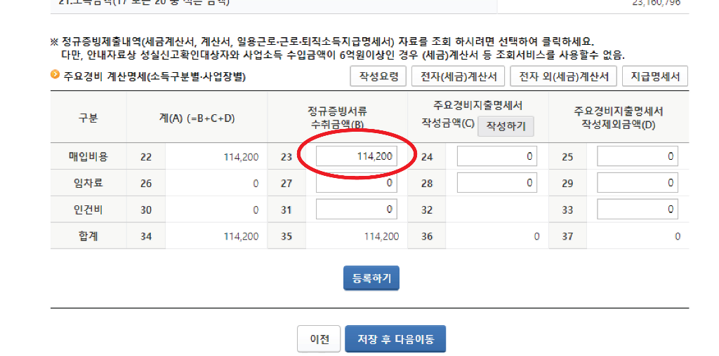 * 정규증빙서류~ 항목에