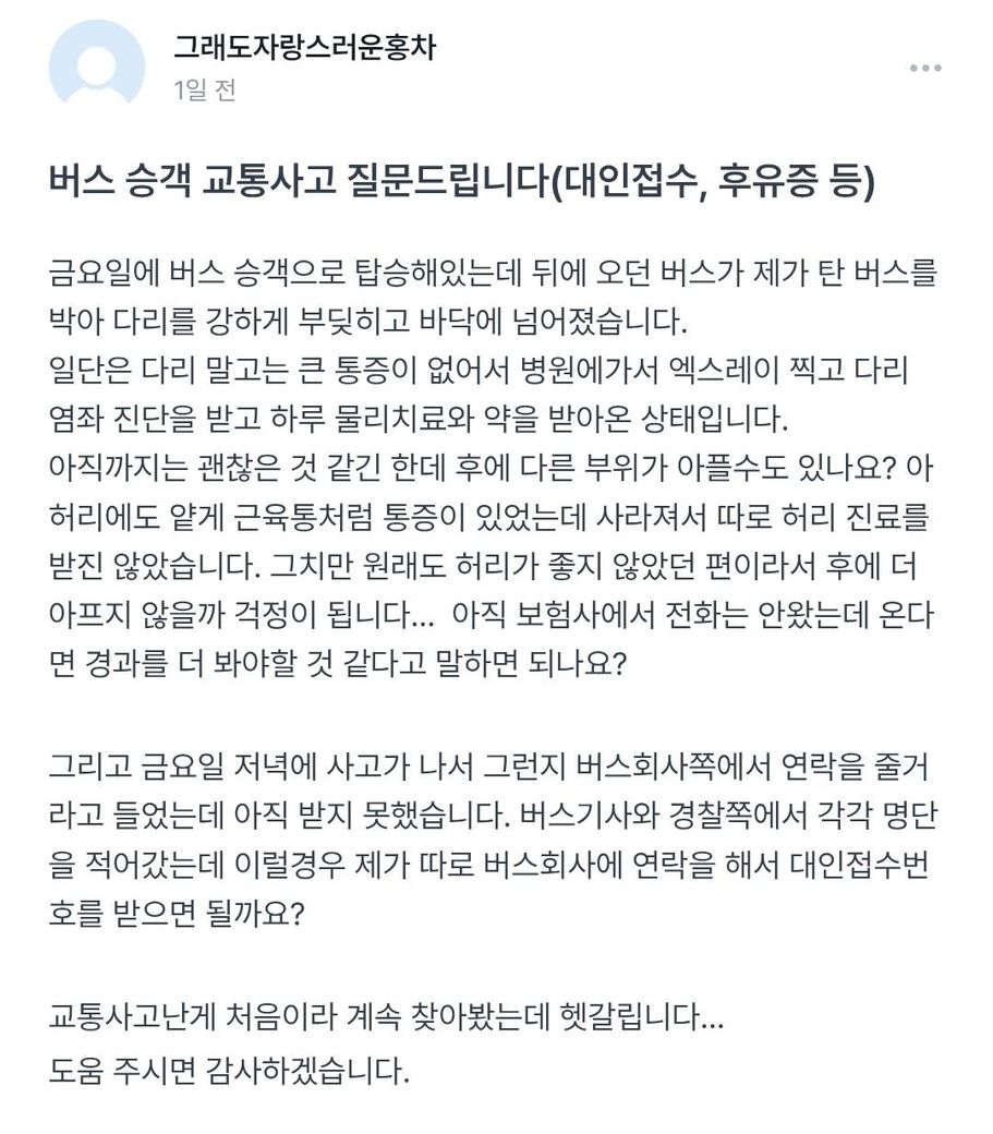 버스 승객 교통사고 대인접수 안하고 합의 이렇게 가능할까요