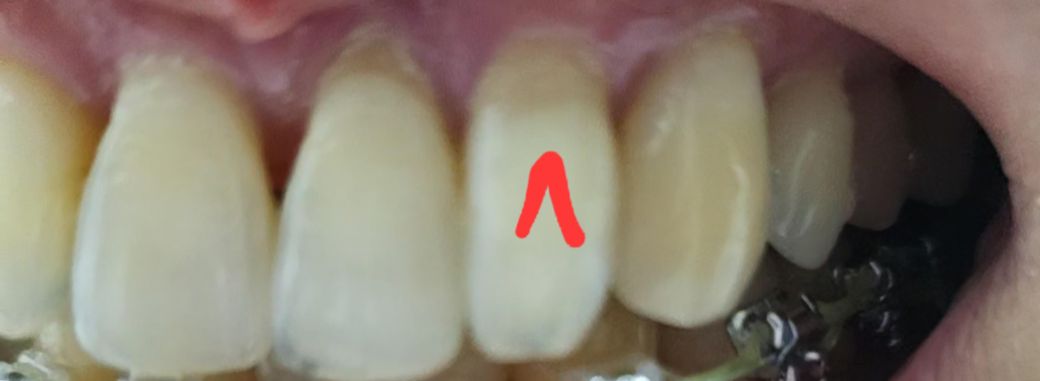 치경부는 치아 머리부분과 색상이 약간 차이가 날수 있습니다. 글고 그림자가 져서 더 어둡게 보일수 잇으니 다시 하시면 오히려 치아가 더 예민해질수도 있습니다.