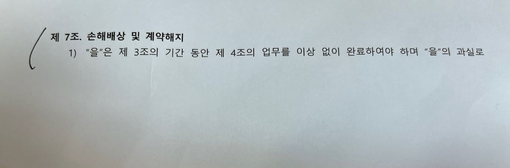 계약서상에 퇴사 몇일전 통보 관련된 내용이 없는데