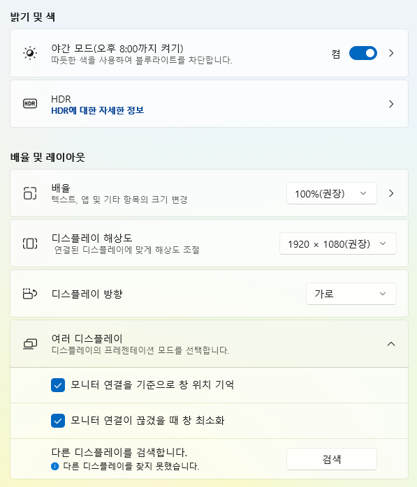 윈도우 11, 듀얼모니터 설정/인식 하는 법이 궁금합니다.