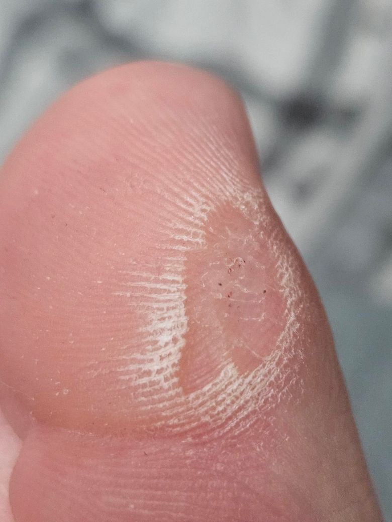 오늘 보니 엄지발가락 부분의 굳은 살이 심한 것 같아 잘라냈는데, 안쪽에 붉은? 갈색 점 같은 것들이 몇 개 보이더라구요.