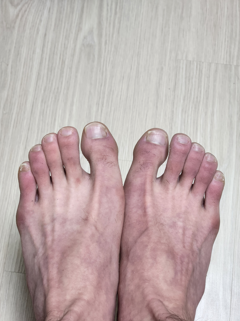 레이노 증후군은 혈관의 일시적이고 비정상적인 수축으로 인해 손가락이나 발가락에 통증, 창백함, 감각 상실, 발열감 또는 변색이 발생하는 상태입니다. 일반적으로 레이노 증후군의 증상은 추위에 노출되거나 스트레스를 받을 때 일시적으로 나타나고, 따뜻해지면 혈관이 다시 확장되어 증상이 완화됩니다. 지속적으로 빨갛게 부어 있는 경우는 레이노 증후군의 전형적인 증상 패턴과는 다소 차이가 있습니다만 레이노 로 진단을 받으셨다면 이로인한 증상의 아형일 가능성이 있습니다.