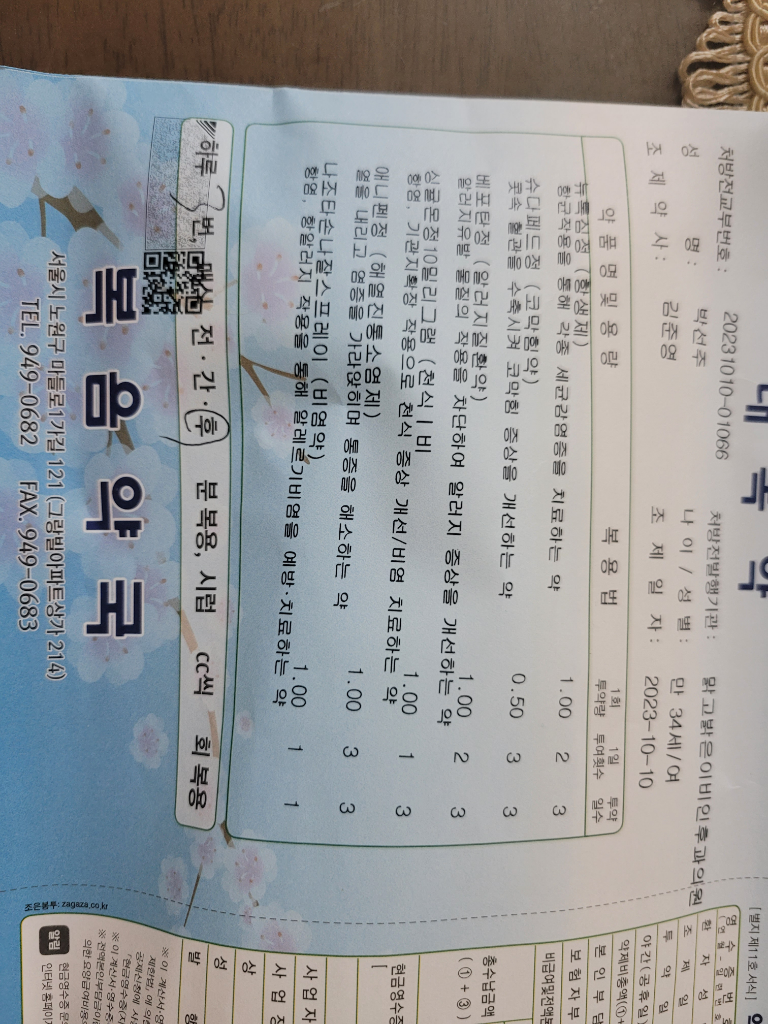 처방받으신 약중에서는 슈다페드정이 겹치긴하지만 0.5알이라서 드셔도 괜찮을것 같아요.