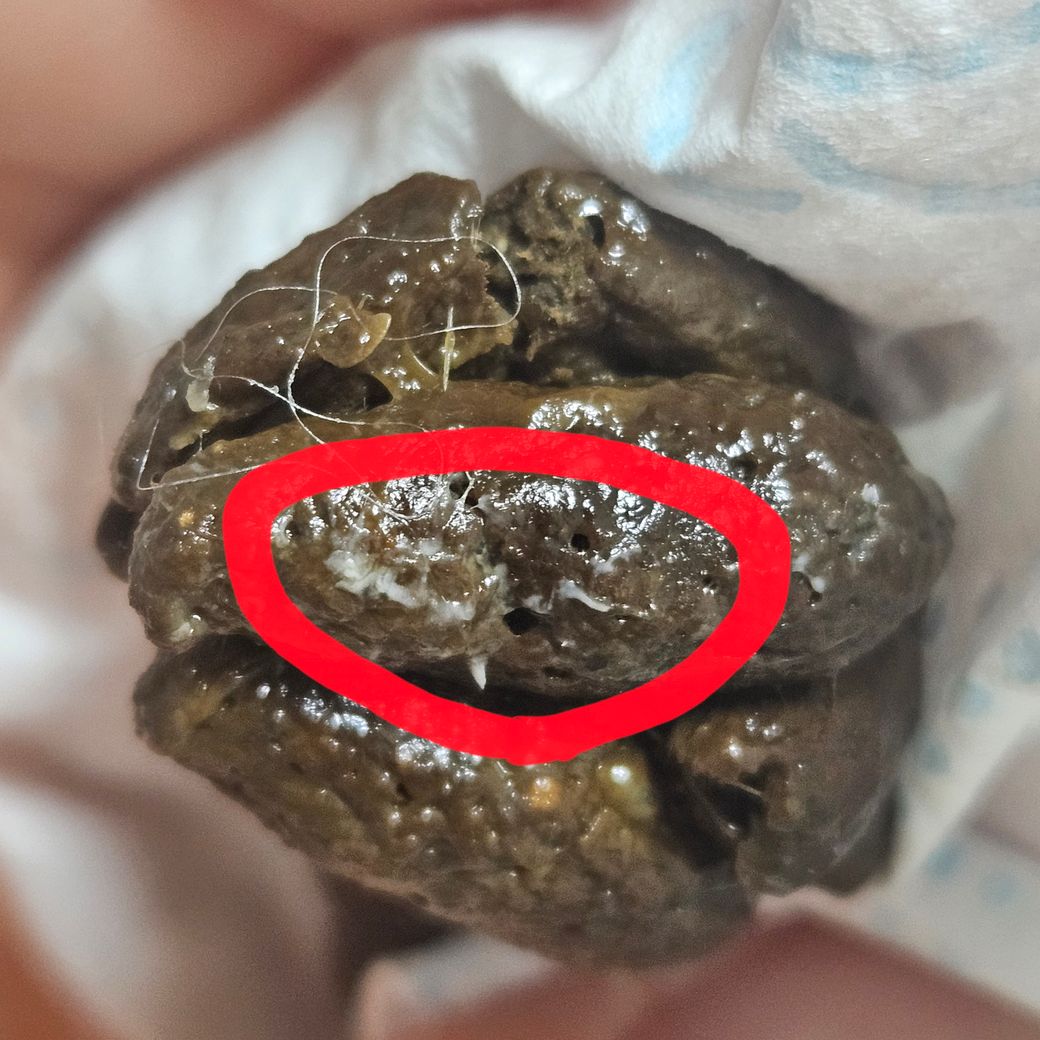 사진속에 변에 일부에 흰색 부분. 꼭 삼겹살기름 굳은것처럼 그런게 묻어나오는데 매번그런건아니구 2일에한번정도 보이는데 뭐일까요?