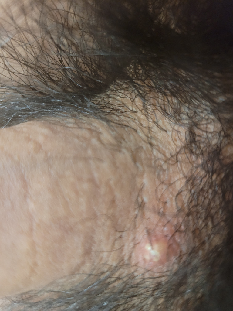 염증으로 인하여 유발된 종기의 가능성이 생각됩니다. 청결에 유의하고 꽉 끼는 속옷이나 바지는 피하며 증상이 지속시 비뇨기과 진료를 받으시기 바랍니다.