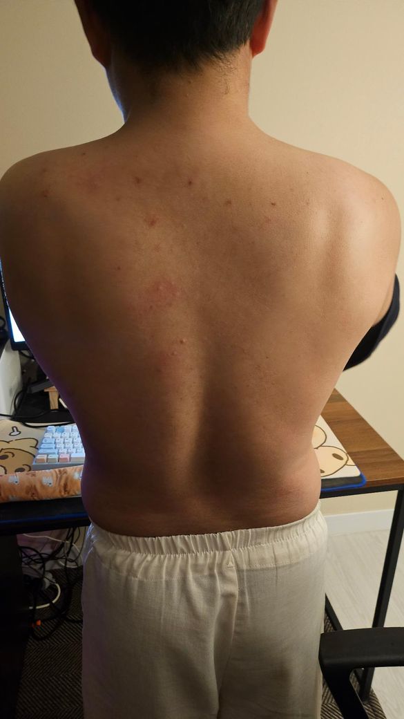 사진이 작아서 잘 보이지는 않습니다만, 두드러기 아닐까 싶어요. 붉게 튀어나온 병변 같거든요. 마치 모기 물린 것같은 피부라서요. 가렵다면 두드러기일 가능성이 높습니다.