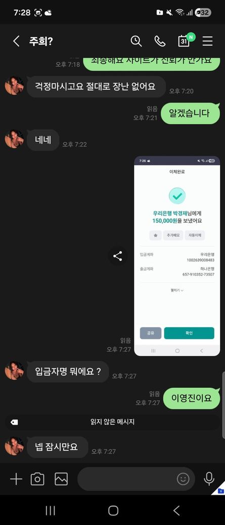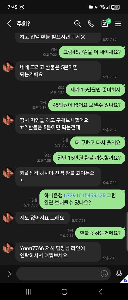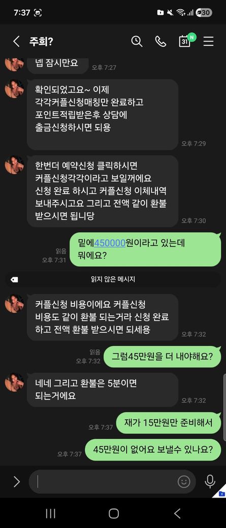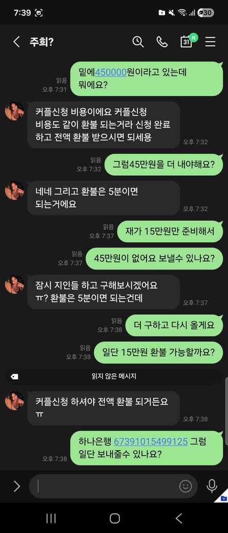 라인으로 연락해서 데이트사이트가 4주년이벤트 이라고 해서 호기심에 한번 해볼까란 마음으로 했습니다 그러던이 환불할수 있다고 했는데 돈을 더 달라고 하네요. 그래서 이거 사기인가 해서 밑에 회사정보을 조회했는데 아니더군요 그래서 혹시 계좌을 조회해봤는데 사기계좌라고 안떠서 한번 믿었습니다. 사기꾼을 믿은 재가 바보죠 재 15만원 환불이든 처벌이든 가능할까요?