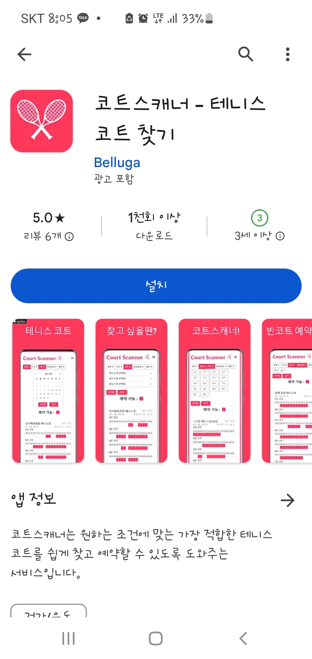 앱다운로드 전용 앱에서 테니스예약 검색하시면 여러 앱들이 나온데..비교 해보시고 잘 사용 하시길 바랍니다.