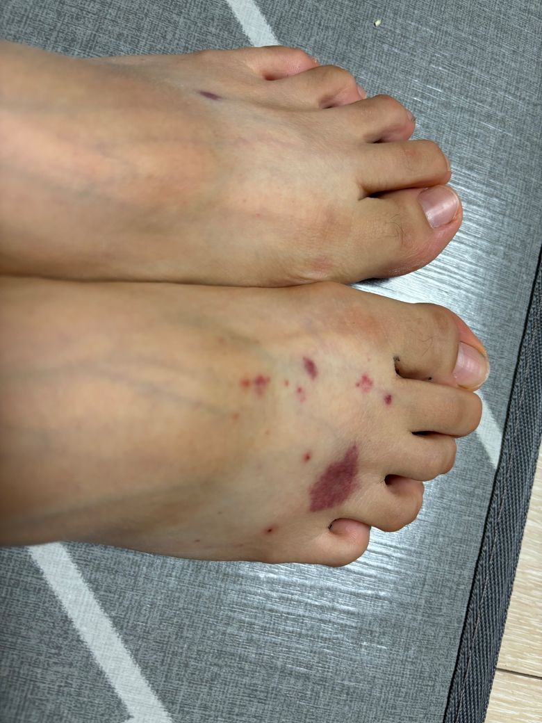 첨에는 진짜 조그만한 반점이였는데 갑자기 발등이랑 다리까지 붉은 반점처럼 올라오는데 이게 뭘까요? 아무리봐도 뭔지를 모르겠어요...!