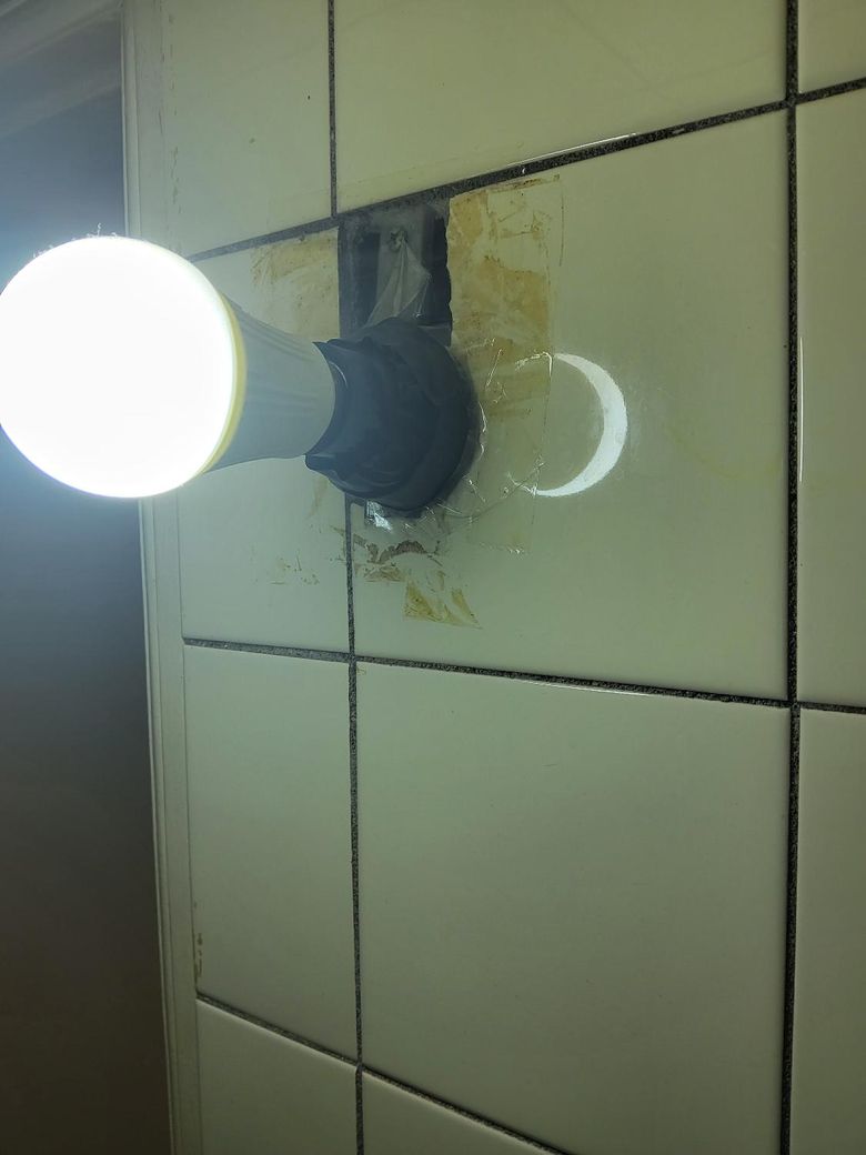 타일이 깨져서 가릴수있게 조금 크면 좋겠습니다. 청정이 낮아서 벽면에 등을 만든거같아요
