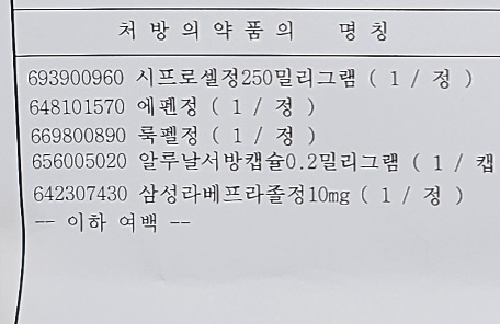 아래 처방약 중 삼성라베프라졸정10mg는 빼고 복용하시길 바랍니다.