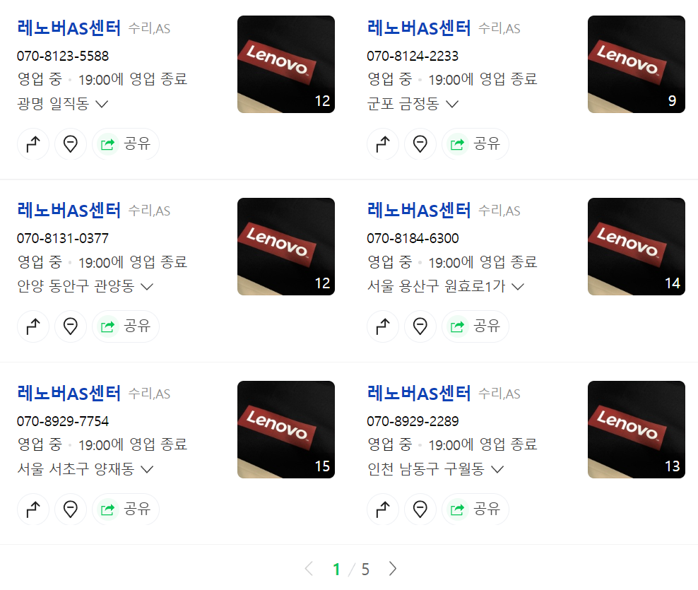 제가 네이버 검색에 레노버AS 센터를 검색 후
