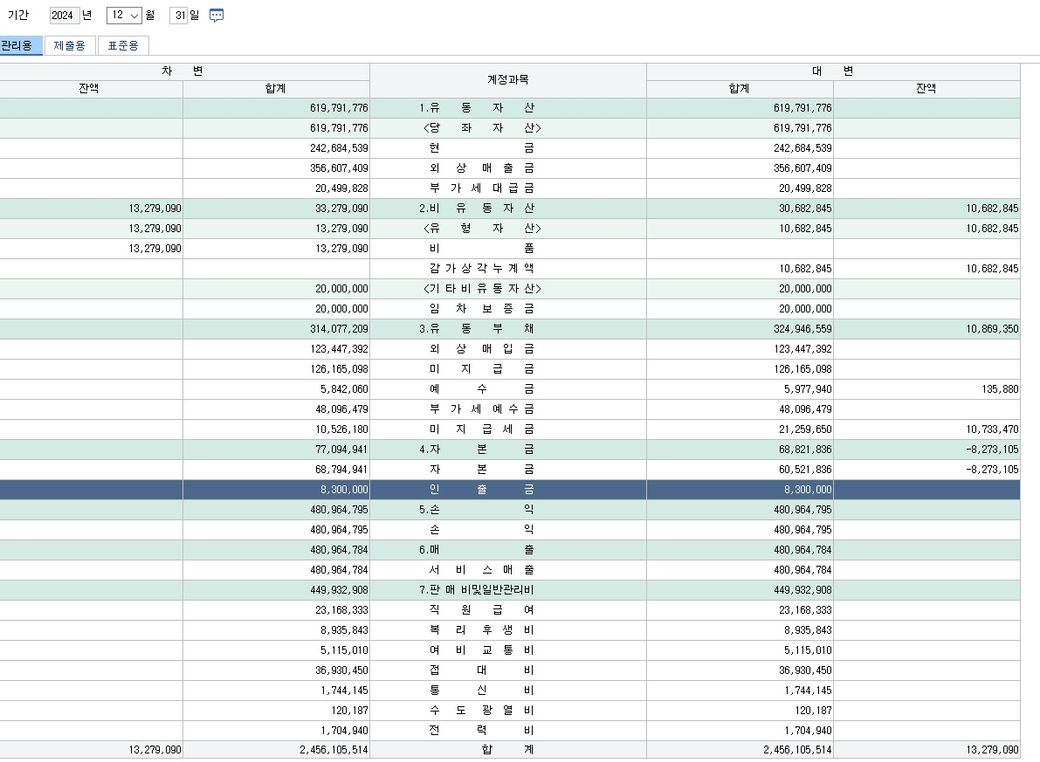 종합소득세 개인사업자 결산 중 입니다.