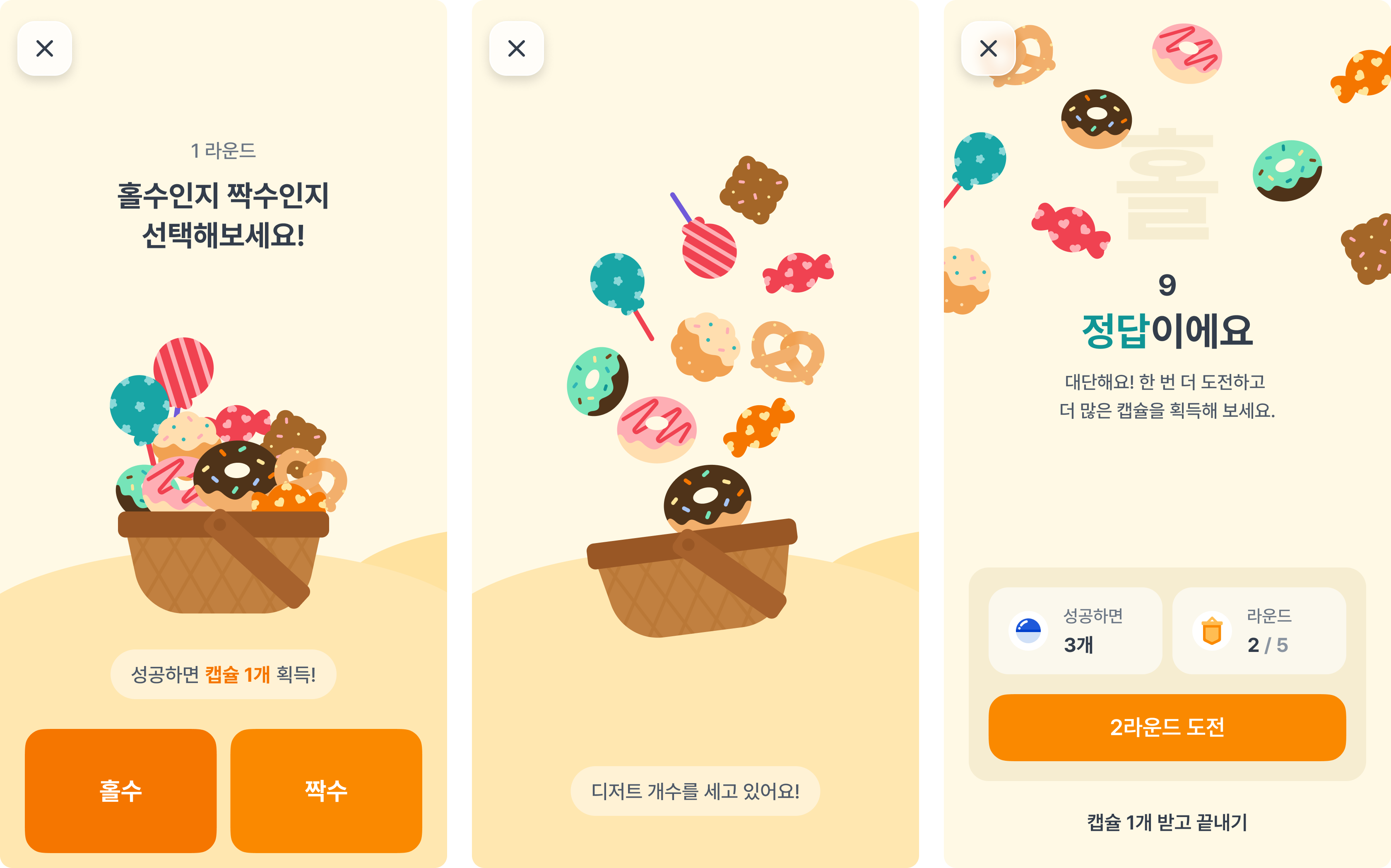 단, 실패하면 이전 라운드에서 획득한 캡슐까지 모두 잃게 돼요.