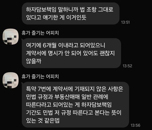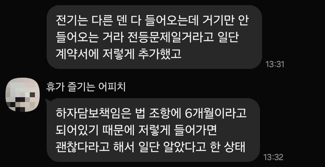 - 부동산경제만두왕만두가계약금 후 다세대주택 매매 거래시 특약사항하나의 방에 전등이 안들어와서 이렇게 특약문구를 수정했는데 전기자체의 문제인지에 대해 법조항에 6개월이라고 되어있기 때문에 특약사항에는 따로 기재를 안해도 괜찮고 전등만 교체 하는 것처럼 부동산쪽에서 얘기했다는데 저렇게 기재해놓아도 문제가 없을까요?7명의 전문가가 답변했어요