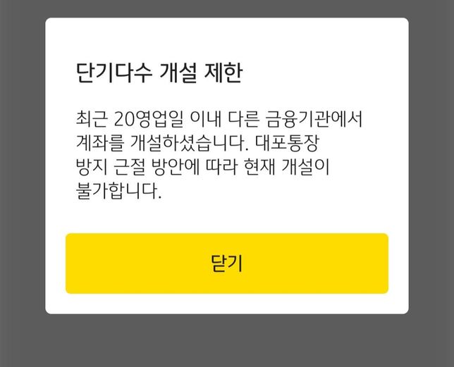- 예금·적금경제존레논단기다수 개설 제한 질문드립니다..아이 입출금 통장과 주식계좌를 동시에 개설하고자 영업점 방문했습니다. 입출금 계좌는 국민으로 개설했고 증권계좌도 kb증권 비대면으로 개설하려고 하니 단기다수 개설 제한 메시지 나오면서 진행이 안되더라고요. 개설 제한 되는게 정상인거죠? 제한 기한이 지날때까지 기다리는것 외엔 조치방법이 없는건가오?4명의 전문가가 답변했어요