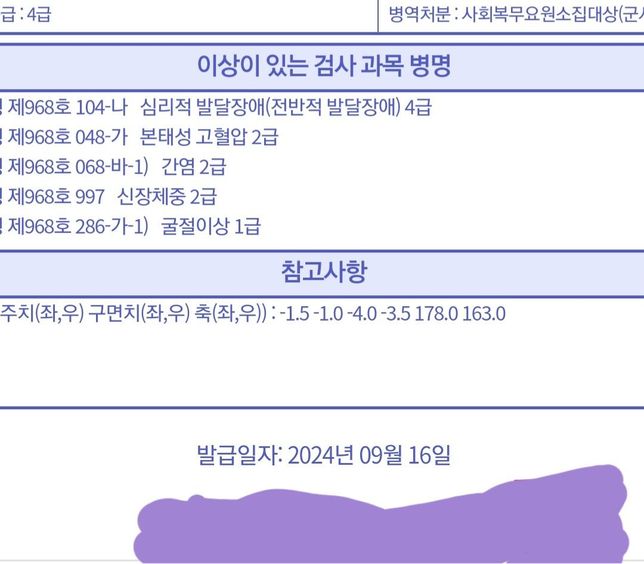 저 2019년때 신검 결과인데요 뭐로 공익인가요? 구체적으로 공익사유가 뭔가요? 궁금해져서요. 어떤 이유로 4급을 받은거죠?
