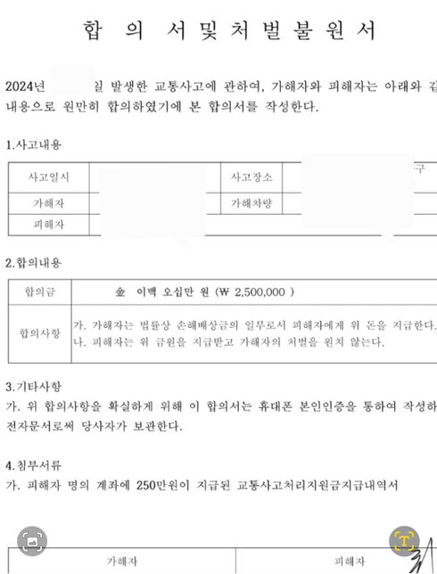 - 교통사고법률진실한부전나비199교통사고 형사합의후 채권양도 관련입니다신호위반(12대중과실)로 교통사고났습니다저는 피해자고요가해자측 법무법인 담당자가 연락와서,가해자보험으로 형사합의 250만 지급가능하다고 합의요청이 왔고,형사와 민사는 별개니까 민사는 따로 진행가능하다해서그래서 형사 합의해주고, 민사는 아직 진행중입니다.(통화녹음본 복구예정)근데 어제 민사(렌터카공제조합)에서 연락을 받았습니다.민사합의금중 가해자측이 형사합의로 지금한 250만원은 자기들한테 보내라고했답니다.채권양도통지를 얘기하면서.나는 가해자측 법무법인에 따졋더니, 합의상 법률적으로 이상없고 모르쇠하는중입니다. 가해자측 요청이라 본인들도 어쩔수없다고 민사쪽에다가 얘기하라네요.저는 이상황이 도저히 이해가 안되어서 가능하다면 형사합의를 취소하고싶은 생각입니다.제가 어떻게 할수있을까요?법률적검토도 고려중입니다.1명의 전문가가 답변했어요