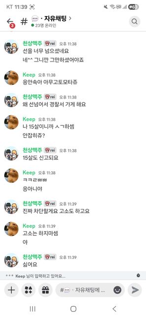 - 기타 법률상담법률새벽냐옹이거 신고되나요 디스코드인데 갑자기 욕해서요핵주면신고안함? 이러는데 15살이라는것도 거짓말 같고 경찰서에 신고 넣을수있나요?? 그만하랬는데도 계속 그래서요 ㅇㅅㅇ
