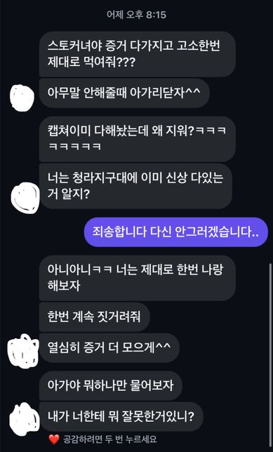 - 명예훼손·모욕법률탈퇴한 사용자어떻게 대처 해야 좋은 방법이 있을까요?저가 어떤 방송인한테 흙선물과 편지를 썻는데 편지 내용은 김모씨,박모씨를 위한 선물을 준비했습니다 이것을 준비를 하기위해 많은돈을 투자했습니다 좋아하는 성향을 몰라 이것을 준비했습니다 대충 이케 적었었고 김모씨가 저를 주거침입죄 스토킹 불안감조성 이케 고소한다 했는데 주거침입죄만 고소장이 왔고 경찰한테 조사받아 검찰에서 증거불충분으로 끝났습니다 근데 저가 박모씨한테 토스로 smalls디엠 이런 식으로 보냈고 디엠을 했습니다 마지막 디엠 사진은 저가 차단당했서 본계로 디엠으로 박모씨 가오충 주접 쳐떤다 박모씨 특징:본인이 잘났다고 생각해서 잘생긴척 하는 거 올림 존예 보라고 이 댓글을 스토리에 댓글 달았고 저가 @@닮았네 이케 말했더니 저렇게 디엠이 왔습니다 이상황을 보면 박모씨는 어떤 고소를 할수있나요??1명의 전문가가 답변했어요