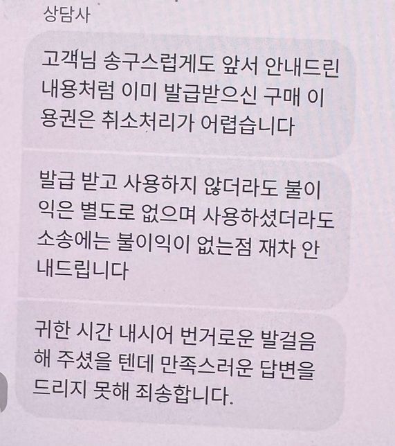 - 민사법률겁나창의적인푸들쿠팡 단체소송 관련문의 드려요!! 고객센터문의했는데 참 딱봐도 정해진 대답만 하네요 ㅈㄴ화나게 엄마가 단체소송 참여할 수 있다고 쿠폰 쓰지말라했는데 제가 쿠폰을 받아버려서 쿠팡 쇼핑 5천원 쿠팡이츠 5천원 이렇게 받았어요. 하지만 사용은 안했는데 이게기한이 있어서 취소문의 했는데 안된다네요.. 사용 안하고 기간지나게 납두는게 낫겠죠?2명의 전문가가 답변했어요