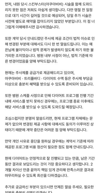 - 의료법률운좋은하늘소115성형외과 모델 계약 법적자문드립니다안녕하세요. 성형외과와 체결한 다이어트 리얼모델 계약과 관련하여 법적 자문을 구합니다.⸻1. 계약 내용인터뷰 및 비포·애프터 사진 촬영, 홍보 활용에 동의하는 조건으로 모델 계약을 체결했습니다.병원 측은 유전자 검사, 맞춤 수액, 다이어트 주사제(마운자로 등)를 제공하기로 했습니다.약은 첫 달은 제가 비용을 부담하고, 이후에는 매달 목표 체중을 달성할 경우 무상 제공하기로 설명받았습니다.계약 당시 내용을 녹음해두었습니다.위약금 조항이 없어 계약 당시 문의하였고, “현재 모델분들이 잘 이행 중이라 별도 위약금 조항은 없으며, 목표 체중 미달 시 약을 지원받지 못하는 구조가 패널티”라는 설명을 들었습니다(녹음 보관 중).현재 계약서 사본은 받지 못한 상태입니다.2. 문제 발생최근 ‘박나래 주사 이모 사건’ 이후 병원 측에서 “법적 이슈로 인해 더 이상 약을 무상 제공할 수 없다”고 통보했습니다. (병원 내부 사정이 아닌 법적 기준에 따른 변경이라고 했는데 현 시점에서 법적기준이 바뀐것은 없다고 알고있습니다. 모델에게 댓가로 약을 무상제공하는 것이 불법이라면 계약 자체가 성립되지 않는다고 생각하는데 맞을까요?) 대신 다른 시술을 제공하겠다고 했으나, 이는 계약 당시 합의된 핵심 조건과 다른 내용이며 제가 원하지 않는 시술 목록입니다.저는 변경 조건에 명시적으로 동의한 적이 없습니다.약 대신 제공되는 시술 예약은 잡은 상태이나, 아직 시술은 받지 않았으며, 지속적으로 조건 변경에 대한 불만 의사를 전달해왔습니다.그럼에도 병원 측은 “이미 변경에 동의한 상태이며 계약 중단은 어렵다”고 주장하고 있습니다.⸻3. 현재 상황일부 진료, 약 처방, 수액 등은 이미 제공받았습니다.인터뷰 및 촬영은 일부 진행되었으나 아직 콘텐츠는 사용되지 않았습니다.남은 촬영 일정은 진행하지 않겠다는 의사를 전달할 예정입니다.저는 계약의 핵심 조건이 변경되었다고 판단하여 계약 해지를 원하며, 추가 비용 정산 없이 종료하고 싶습니다.4. 질의사항1.병원 측의 일방적인 제공 조건 변경이 계약 위반(채무불이행)에 해당할 가능성이 있는지2.제가 계약 해지를 요구할 경우 병원 측이 손해배상이나 비용 청구를 할 수 있는지3.촬영된 콘텐츠의 사용을 거부할 수 있는지4.녹음본이 있는 경우, 계약서 사본을 받지 못한 상황이 법적으로 불리하게 작용하는지조언 부탁드립니다+ 현재 계약서를 제가 가지고 있지 않는상태라 제 의견을 카톡으로 남겨놓으면 계약서 수정할 가능성이 있을까봐 걱정됩니다. 병원에 방문하여 이 내용을 서면으로 전달 하고 당일에 사진찍어서라도 계약서를 가지고오는게 나을까요?1명의 전문가가 답변했어요