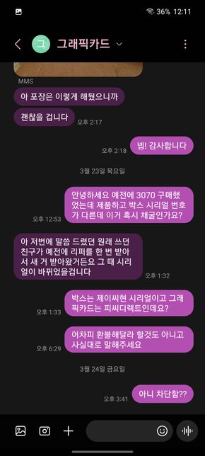 - 지식재산권·IT법률참신한칼새116이런것도 중고거래 사기죄가 될까요?중고거래로 그래픽카드를 샀습니다.판매자는 1차로 친구가 샀고 2차로 그것을 자신이 샀다고 했습니다.그런데 제품을 받고보니 일단 제품은 동작하는데 온도가 너무 높아 박스에 있는 유통사인 제이씨현에 as를 보냈더니 자기네들 제품이 아니라는 겁니다.알고보니 박스와 그래픽카드의 시리얼 번호가 다른 것입니다.기가바이트 그래픽카드 유통사에는 제이씨현과 피씨디렉트가 있는데박스에는 제이씨현 시리얼이 써져있지만, 그래픽카드는 피씨디렉트 시리얼이 쎠져있는 것입니다.그래서 판매자에게 이를 물어봤더니 차단 후 연락이 안됩니다.저 사람이 말한대로 리퍼를 받았어도 제이씨현이면 제이씨현 그래픽카드로 리퍼를 받아서 회사가 달라질 일이 없는데해명할 생각은 안하고 차단한게 너무 괘씸하고 화나는데 방법이 있나요?2명의 전문가가 답변했어요