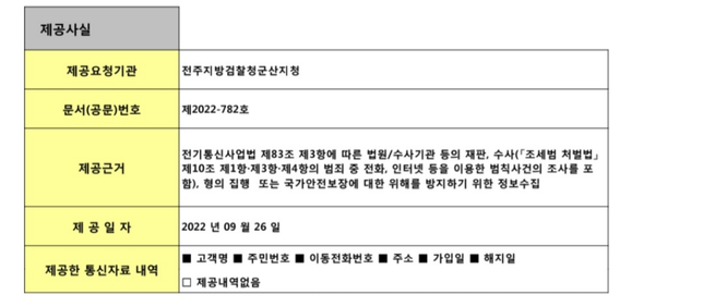 - 지식재산권·IT법률날씬한콜리51통신자료 제공사실 확인서가 이렇게 왔는데 경찰이 저를 수사하는건가요?제공근거가 이해가 안되는데 설명좀 해주실 변호사님 계신가요? 작년 9월에 제공됬는데 왜 지금까지 연락이 없나요? 제가 사는곳은 경남인데 왜 전주에서 제공됬는지..2명의 전문가가 답변했어요