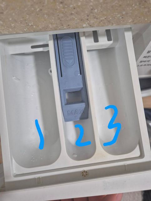 이 사진에서 제가 지금까지 1번 칸에 섬유유연제 넣고3번칸에 세제 넣었는데 원래 어떻게 넣어야되나요?유튜브 보다가 이게 잘못된거라고 나왔는데 어디에 넣어야 되는지는 안나와서요