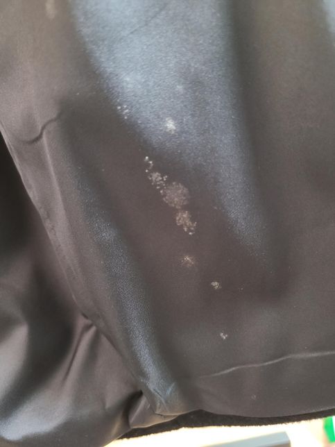 코트 안쪽인데 사진처럼 뭔가가 묻어있네요. 곰팡이일까요? 무조건 세탁을 해야하나요 아니면 그냥 털어도 되나요? 머리아프네요 ㅜㅜ