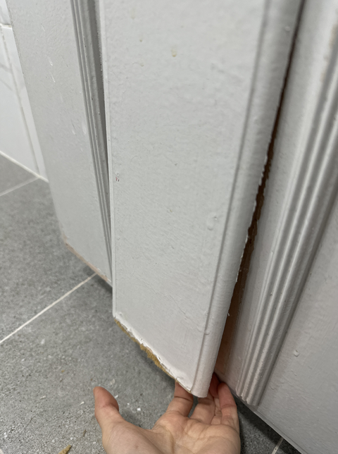 - 인테리어생활요란한황도코도화장실 문이 이렇게됐는데 어떻게하면 붙일 수 있을까요?안녕하세요, 화장실 문이 밑에 물을 먹은거같아서 조금 갈아내고있었는데,이렇게 떨어져버렸네요.어떻게하면 다시 붙일 수 있을까요목공풀이나 이런걸로는 힘들거같아보이던데3명이 답변했어요