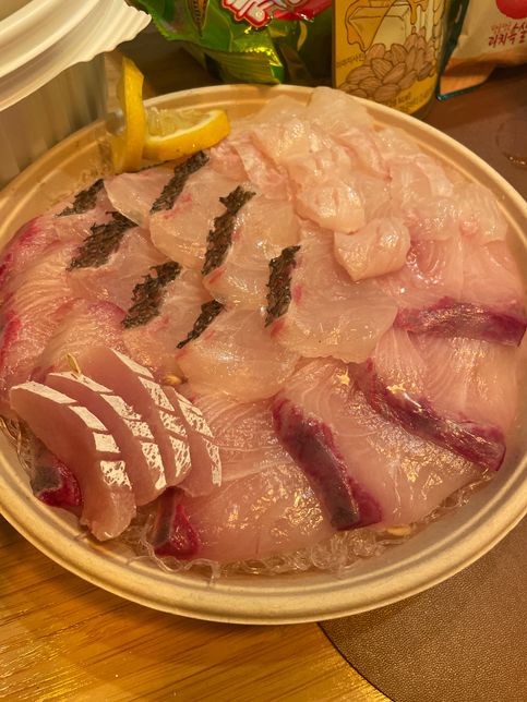 네 가지 회인데 무슨 회인지 아시는 분? 제주도 와서 먹는데 무슨회닌지 너무 궁금ㅍ하네요. 미리 감사합니다. 예상 : 광어 우럭 돔 ???