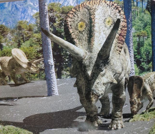 토로사우루스와 트리케라톱스의 공통점은 백악기 말기 북아메리카에 함께 살았던 초식공룡이었잖아요.생김새를 비교했을때 토로사우루스는 몸에 비해 프릴이 길고 하트모양에 엄청 한쪽 방향으로 넓었어요.트리케라톱스는 몸집이 엄청 크고 프릴이 머리끝부터 목밑까지 동그랗고 폭이 넓게 생겼으며 구부러진 뿔이 3개나 달렸어요.그렇다면 토로사우루스는 트리케라톱스보다 몸집에 비해 프릴이 더 크고 넓은 편인가요?
