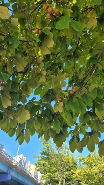 길가다가 궁금하고 신기해서 질문 올려봅니다. 야자수 같기도 하고 열대나무 같기도 한데요. 열매속껍질에 내용물은 밤 같기도 한데 이나무 이름과 열매 이름좀 알려주셔요.