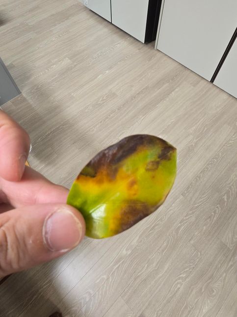 사진처럼 잎 하나가 색이 죽어서 떼어냈는데무슨 문제일까요?물을 많거나 적게 준건가요??ㅠ선물받은거라 잘 키우고싶은데 도와주세요
