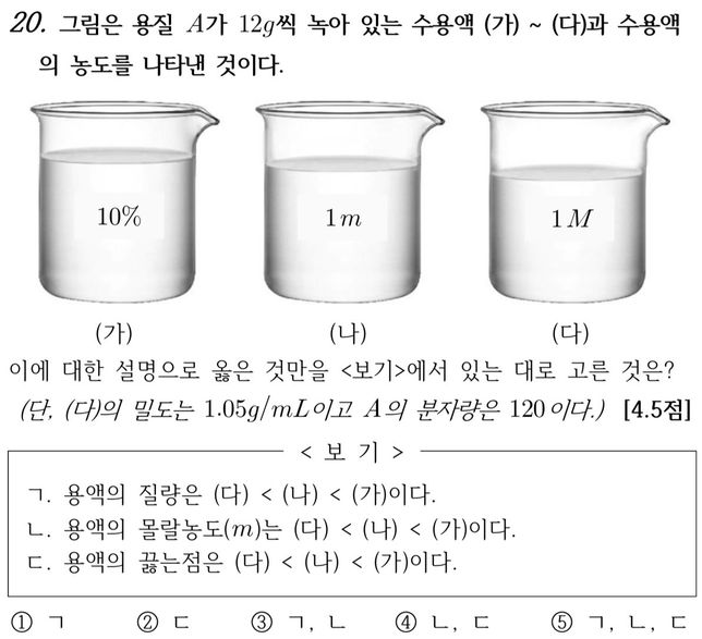 화학 2 문제 질문입니다.정답이 1번이라 하는데 어떻게 풀어야 1번이 나오는건가요?식 풀이도 함께 포함해서 해설해주세요..