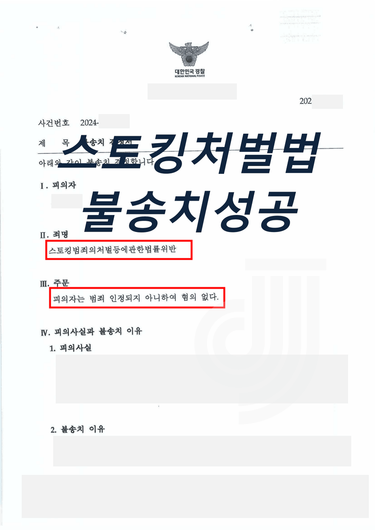 [형사/성공사례] 스토킹처벌법 불송치성공 수원스토킹변호사