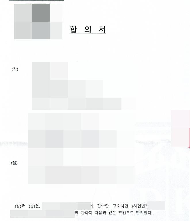 이러한 저희의 집요하고 전략적인 협상 과정을 거친 끝에 고소인 측도 저희의 주장에 공감하며 애초에 요구했던 수천만 원의 합의금을 오 분의 일 수준으로 대폭 삭감하는 데 동의해 주었습니다