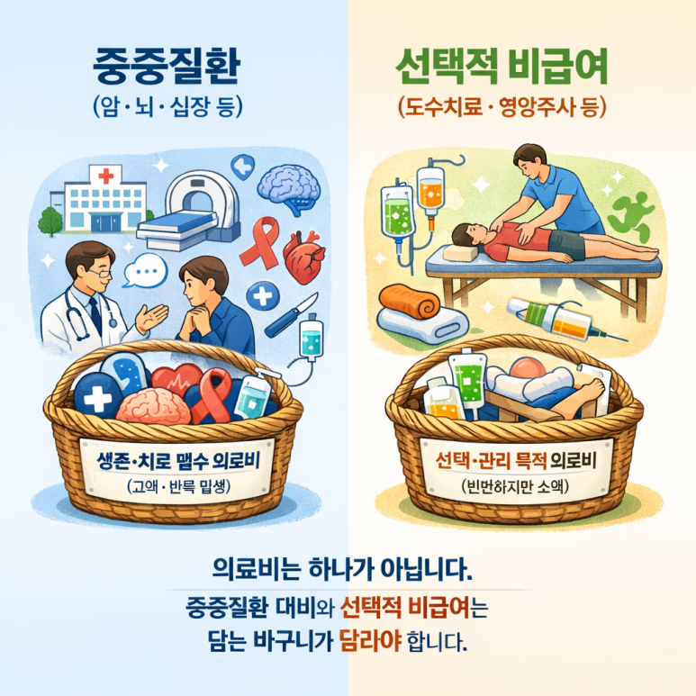구조입니다. 반면, 앞서 언급한 '중증 비급여' 항목은 기존 수준의 보장이 유지되거나 한도가 늘어나는 등 보호 장치가 마련되었