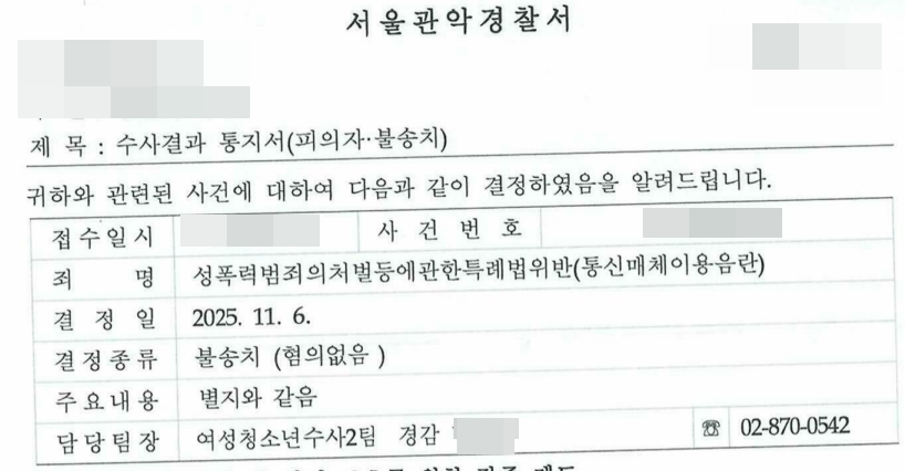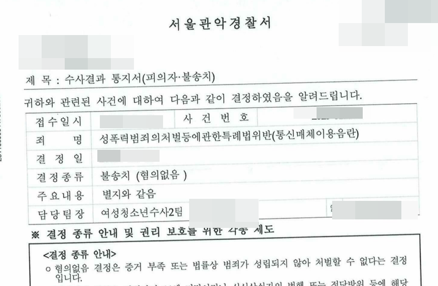 3. 최종 결과 - 성적 목적성 부정, 불송치 무혐의