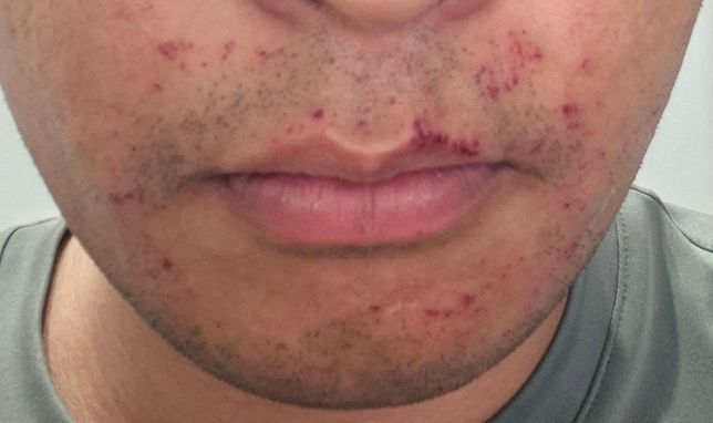 - 기타 고민상담고민상담Q. 수염을 제모하려다가 이렇게 됬습니다.어제 제모크림을 바르고 수염을 제모하다가 아래처럼 상처가났는데 어떻게 해야하나요?제모크림이라 수염은 제거가 되긴되는데 상당히 화끈거리고 빨개지더군요어제밤까지는 상당히 화끈거리고 따가웠는데 오늘아침부터 현재까지는 괜찮습니다문제는 사진에 나온 저 상처입니다저 상처 혹시 자연적으로 없어질까요?