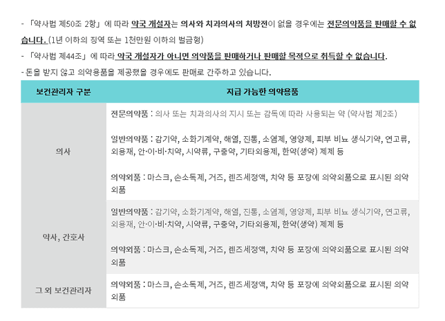 - 생활꿀팁생활회사에서 일반의약품을 약품함에 보관할 수 없나요?A. 안녕하세요. 김수재 약사입니다.상비약으로 제공하려는 경우, 이때 의사/약사/간호사와 같은 보건관리자가 상주하지 않는 경우 의약품 제공 시 약사법 위반입니다.모든 의약품은 상주 보건관리자가 있어야 합니다.