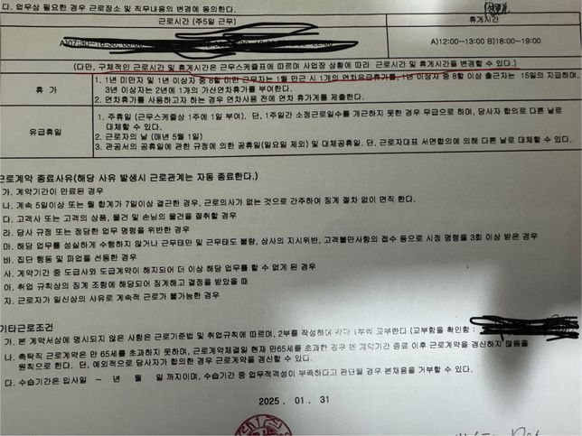 - 근로계약고용·노동Q. 근로계약서 근무형태 변경이 기재되어있는경우 근로시간 변경한다면 무조건 변경하게 되나요?회사에서 갑자기 일방적으로 근로시간을 줄인다고 하는데 알아보다가 근로기준법 제 4조에 의하여 동의가 있어야한다고 적혀있는데 그면 계약서에 빨간줄 그어진 이 조항때문에 4조 위반이 안되는 건가요?